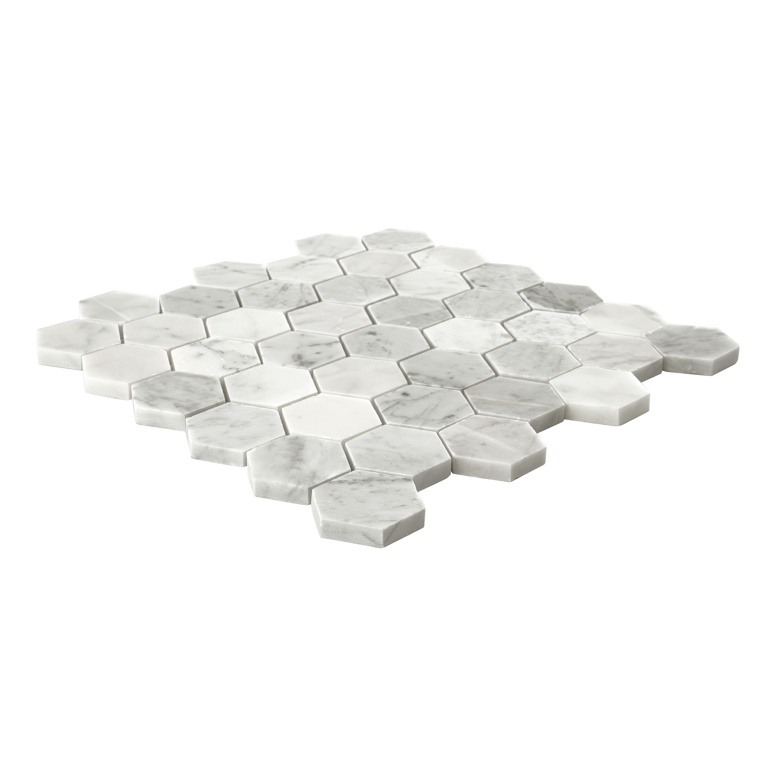 Carrara White 2" Hexagon Polished