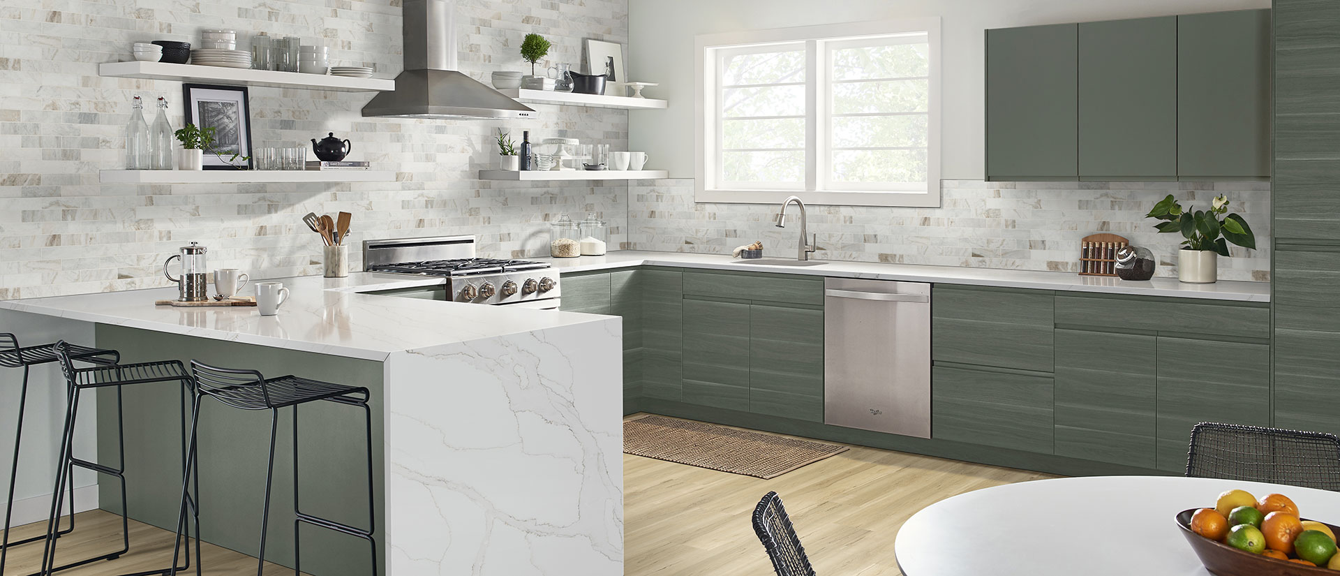 Coordinate Calacatta Izaro with one of these suggested cabinet colors:
