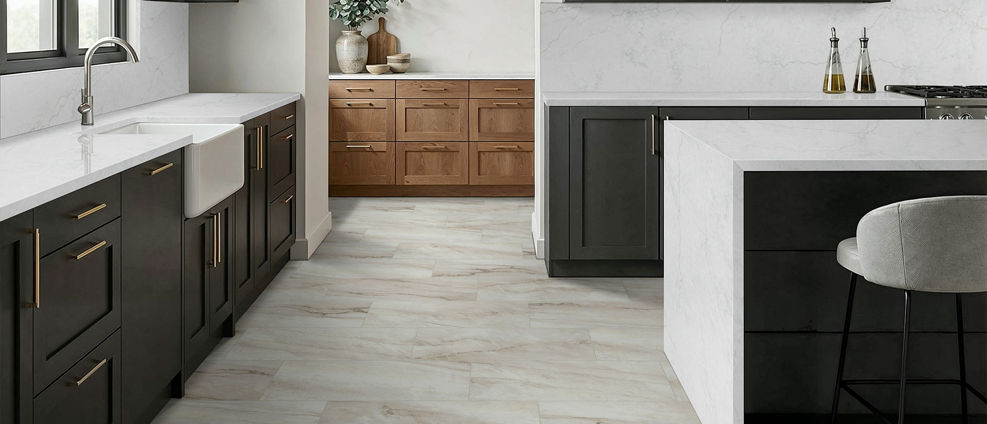 Coordinate Calacatta Miraggio Lusso with one of these suggested cabinet colors: